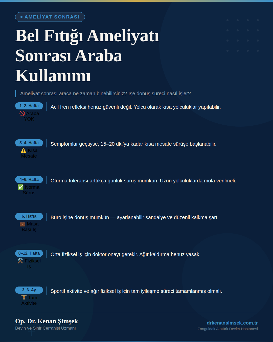 Bel Fıtığı Ameliyatı Sonrası Ne Zaman Araba Kullanılır? İşe Dönüş Rehberi (2026)