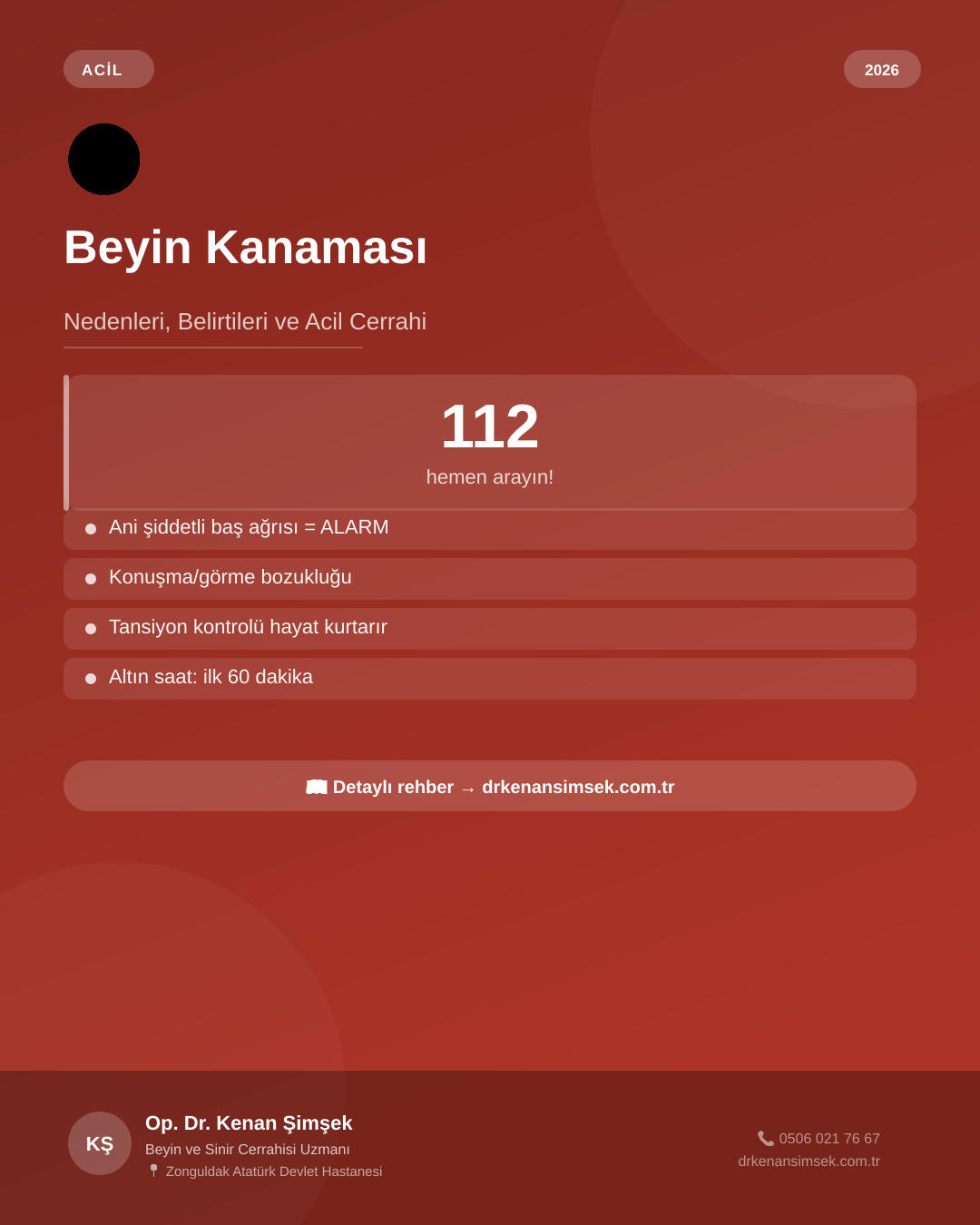 KŞ Op. Dr. Kenan Şimşek Beyin ve Sinir Cerrahisi Uzmanı 📍 Zonguldak Atatürk Devlet Hastanesi 📞 +90 506 021 76 67 📅 Zonguldak’ta Randevu: MHRS & e-Nabız rehberi 🧪 Ücretsiz Sağlık Testleri — Ameliyat gerekli mi? |